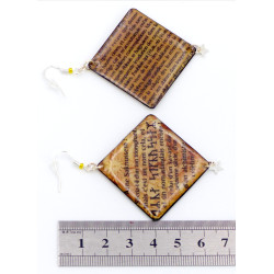Illustrés, sur le recto de ces pendants d’extrême originalité, deux extraits du fascinant roman de Jules Verne « Voyage au centre la Terre » écrit en 1864. Les quelques caractères runiques apparaissent ici, tels que l’auteur les a tracés. Crochets en argent. Deux jolies petites étoiles en argent massif complètent harmonieusement ce fantastique bijou-littéraire incluant la signature de l'écrivain.